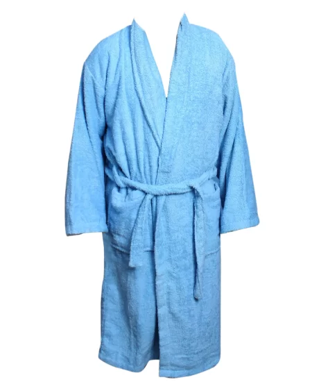 • Terry Bathrobe – 100% Cotton Terry Silky Soft Spa Quality Comfort – Shawl Collar & Pocket – Sky Blue $0.00