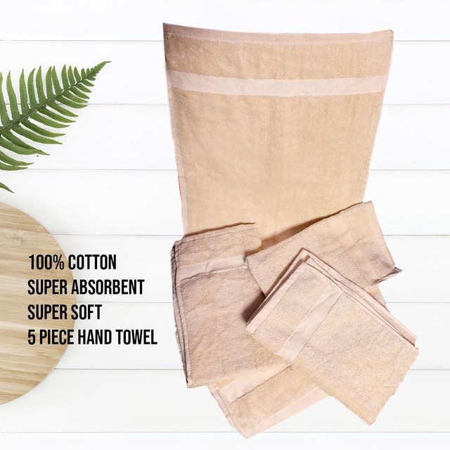 100% Cotton – 5 Piece (34 *54) Velour Super Soft Cotton Luxury Hand Towel – Cream