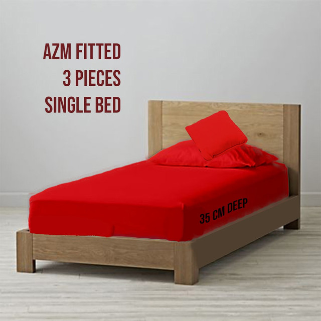 Single Bed Size Microfiber Fitted Bedsheet with Pillow & Cushion Covers – 120*200*35 cm – Red