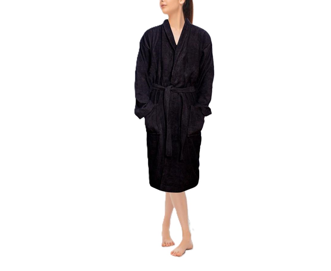 Terry Bathrobe – 100% Cotton Terry Silky Soft Spa Quality Comfort – Shawl Collar & Pocket – Black