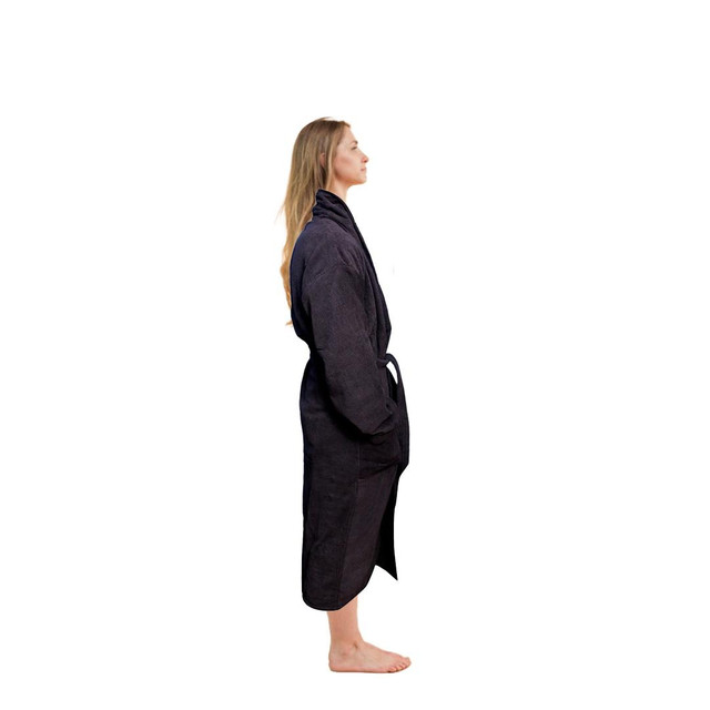 Terry Bathrobe - 100% Cotton Terry Silky Soft Spa Quality Comfort – Shawl Collar & Pocket - Black