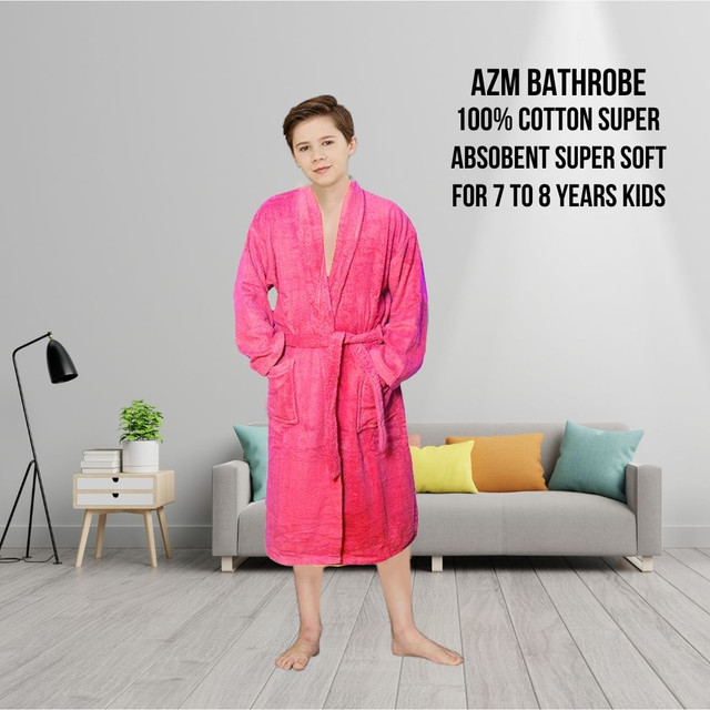 Zero Twist Bathrobe – 450 GSM Stable Cotton ( Super Soft Luxury Bathrobe) – Fushia – Kids Size (08 Years To 10 Years)