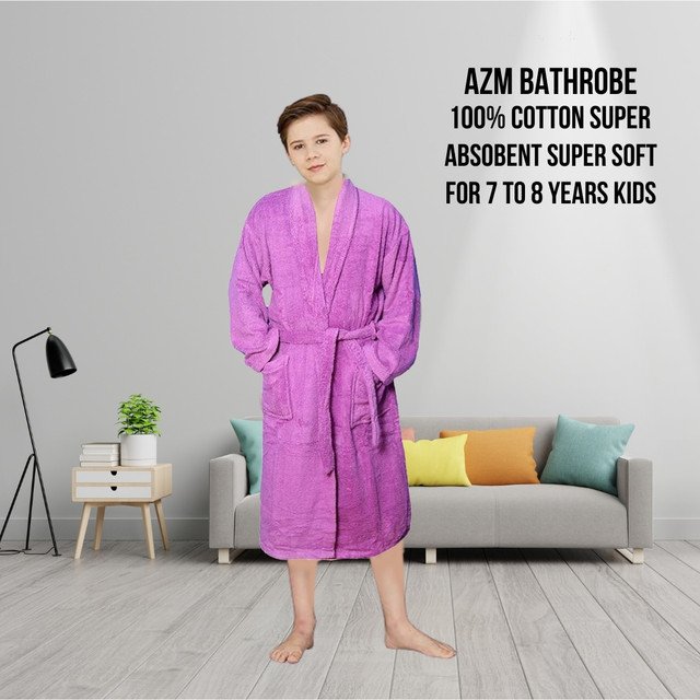 Zero Twist Bathrobe – 450 GSM Stable Cotton ( Super Soft Luxury Bathrobe) – Purple – Kids Size (08 Years To 10 Years)